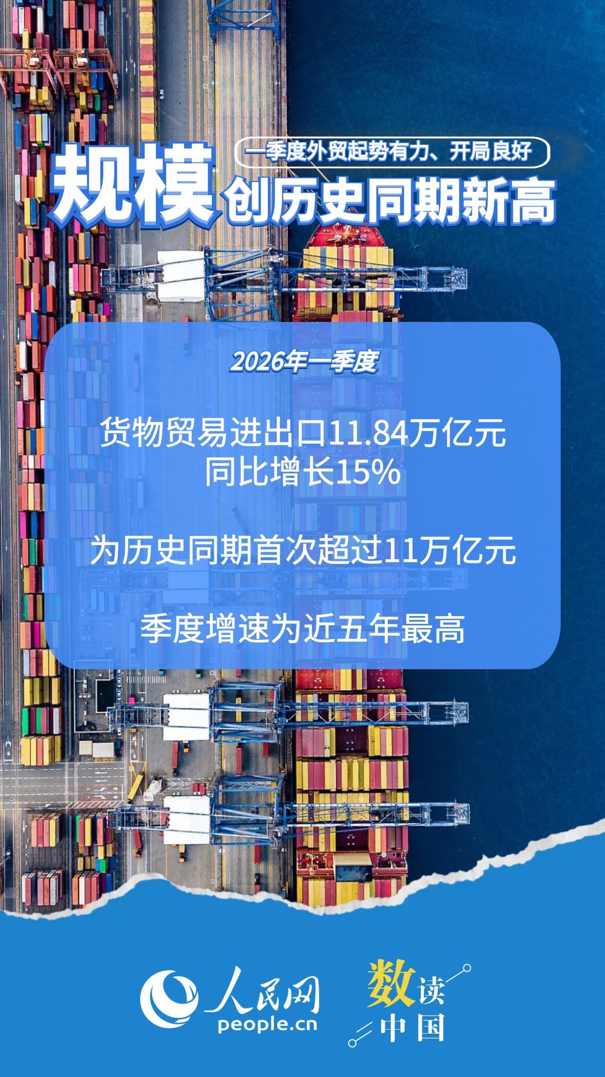 海关总署今天发布的2026年第一季度进出口情况显示,今年以来,在外部形势更加复杂多变的情况下,各地区各部门多措并举稳规模、优结构,企业主动识变应变稳订单、拓市场,推动一季度我国进出口实现较快增长。我国外贸起势有力、开局良好。