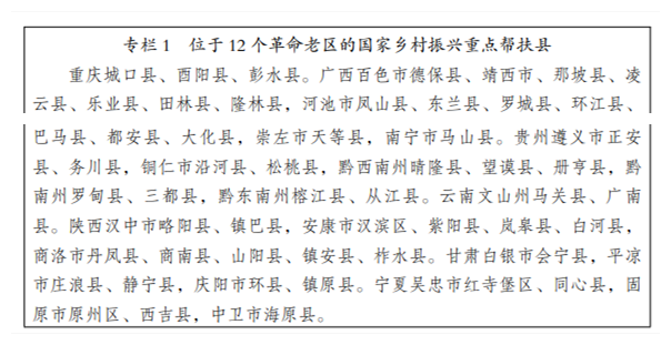 《实施方案》强调,革命老区很多仍属于欠发达地区,12 个革命老区涉及 21 个省、自治区、直辖市的相关县(市、区)中,264 个为原国家扶贫开发工作重点县。“十四五”时期,聚焦重点区域、重点领域、重点人群,支持革命老区全面巩固拓展脱贫攻坚成果衔接推进乡村振兴,有利于把革命老区建设得更好、让老区人民过上更好生活,逐步实现共同富裕目标。