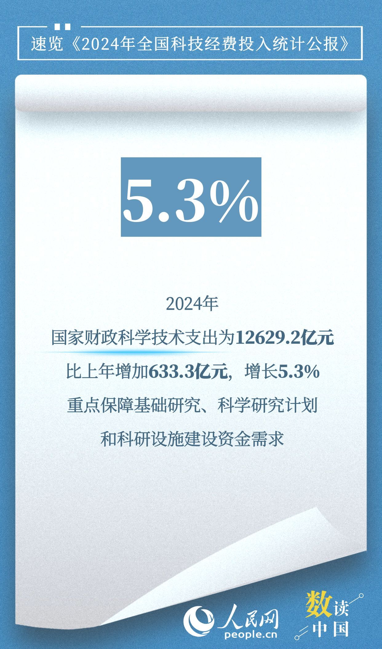 国家统计局、科学技术部、财政部日前联合发布的《2024年全国科技经费投入统计公报》显示,2024年,全国研究与试验发展经费投入保持稳定增长,投入强度较快提升,基础研究投入取得新突破,国家财政科技支出稳步增加。