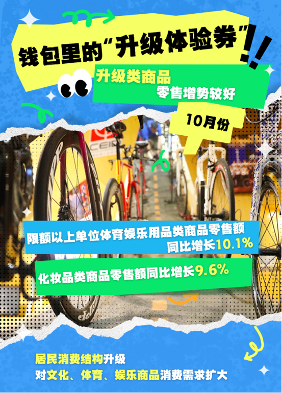 今年以来,各地区、各部门深入推进提振消费专项行动,加力扩围实施消费品以旧换新,大力发展数字消费和服务消费,扩大文体消费,推动消费潜力释放。11月14日,国新办举行新闻发布会,介绍2025年10月国民经济运行情况。一组海报,数览10月我国消费市场亮点,探寻钱包多样“打开方式”。