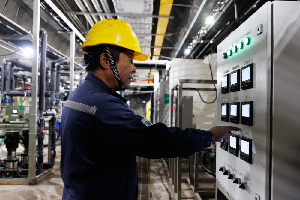 11月18日,工作人员在江门中微子实验的纯水间监测超纯水处理情况。新华社记者 金立旺 摄