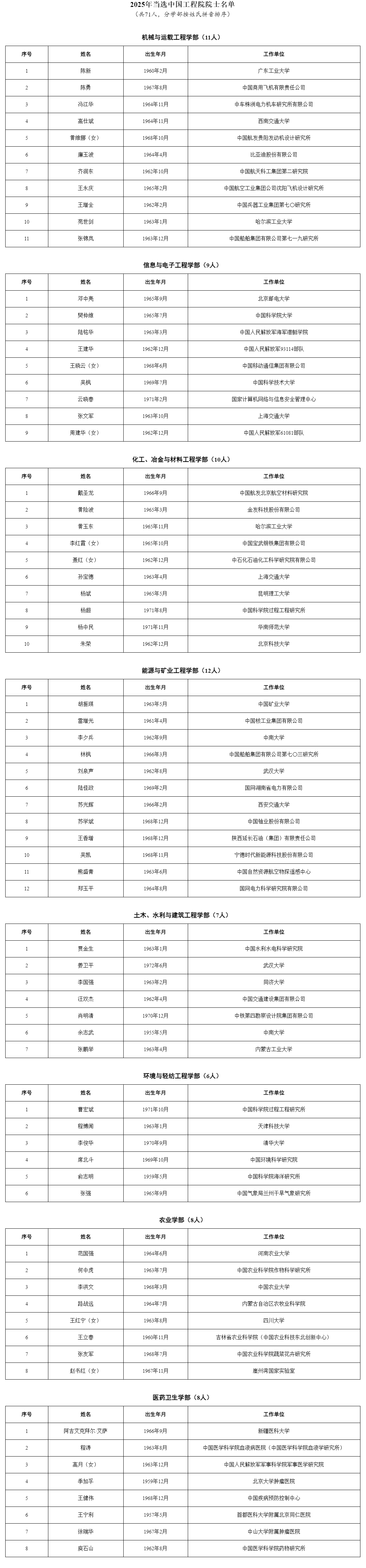 人民网北京11月21日电 (记者赵竹青)11月21日,中国科学院、中国工程院公布2025年院士增选结果,分别选举产生中国科学院院士73人,中国工程院院士71人。