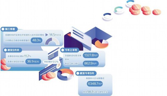 近日,中国人民银行发布的《2025年第三季度中国货币政策执行报告》显示,前三季度,金融机构对实体经济发放的人民币贷款增加14.5万亿元,占同期社会融资规模增量的48.3%。截至9月末,普惠贷款同比增长11.2%;普惠小微贷款余额36.1万亿元,同比增长12.2%。个体工商户和小微企业是市场经济的重要组成部分,也是普惠金融的重点服务对象,信贷资源正不断流入普惠金融的重要领域,支持更多个体工商户和小微企业的“小生意”。