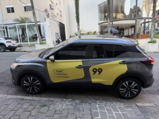 滴滴旗下公司99在巴西的网约车车贴(Food-外卖,Mobilidade-出行,Conta Digital-数字账户),99在巴西提供出行、外卖和金融服务
