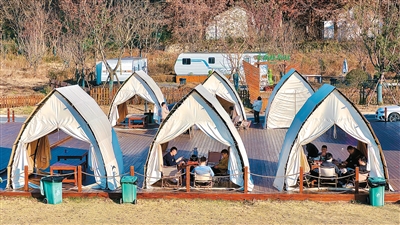 近年来,安徽省芜湖市繁昌区因地制宜打造农旅融合田园观光综合体,发展乡村旅游产业,促进农民增收致富。图为12月6日,游客在繁昌区孙村镇途居马仁山房车露营地休闲游玩。 |