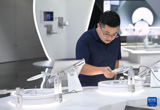 观众在海南自贸港重点园区——博鳌乐城国际医疗旅游先行区观看“永不落幕”国际创新药械展(10月27日摄)。