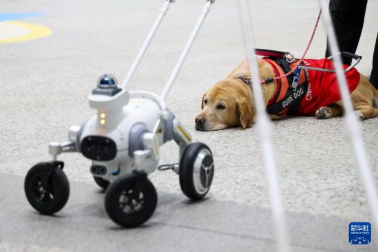12月13日,深圳地铁首次试点启用智能导盲犬“小蒜”,以科技为视障人士地铁出行提供便利。