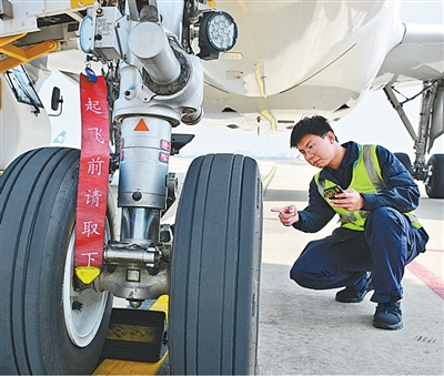 海南省海口市,美兰国际机场,工程师进行飞机航前检查。 |