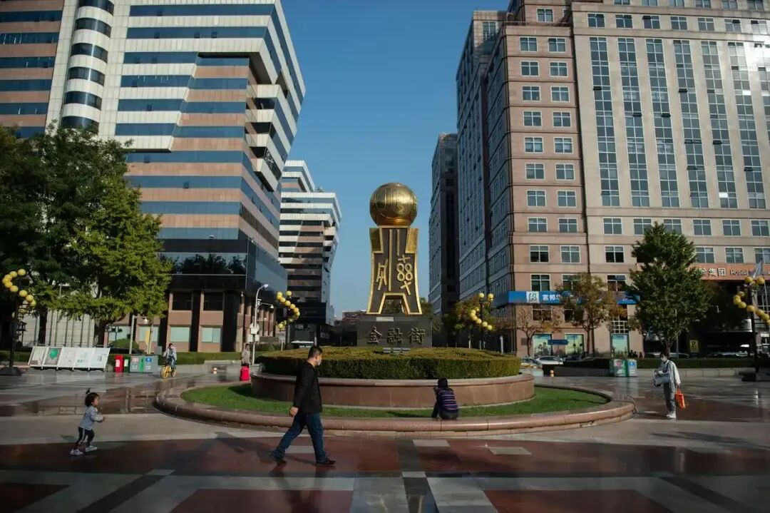 在北京金融街核心区拍摄的“古币·金融”雕塑。 新华社记者 彭子洋摄