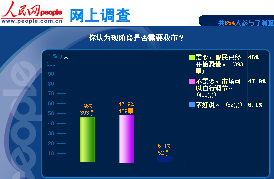 人民网针对近期股市分别向股民提出“股指大跳水,你的信心还在吗?”、“近期炒股收益如何?”、“你认为现阶段是否需要救市?”这3个问题。